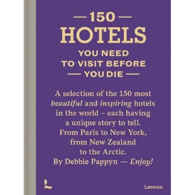 Hotels continue to appeal to the imagination. The sector re-invents itself time and time again and sets the limits for the ultimate overnight stay. But which hotels offer you a once in a lifetime experience? This book lists the ultimate top 150 hotels, compiled by travel and lifestyle journalist Debbie Pappyn. All hotels guarantee a unique experience: a unique view or location, the incredible luxury or inimitable charm, the sophisticated design, the service or simply manta rays and sea turtles swimming under your bed…