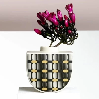 Hand crafted in the Lightfoot Australian studio; these art deco inspired vases are made from beautiful Australian porcelain and feature an original decal print created by Erin.